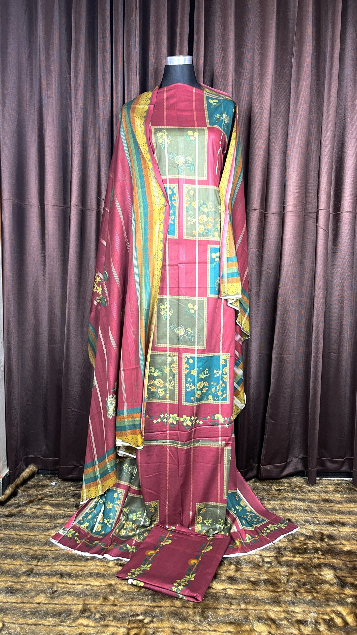 প্রিমিয়াম এমব্রয়ডারেড কটন আনস্টিচড ড্রেস, সাথে এমব্রয়ডারি কটন দুপাট্টা — এলিগেন্ট, স্টাইলিশ ও উৎসব বা বিশেষ দিনের জন্য পারফেক্ট।
