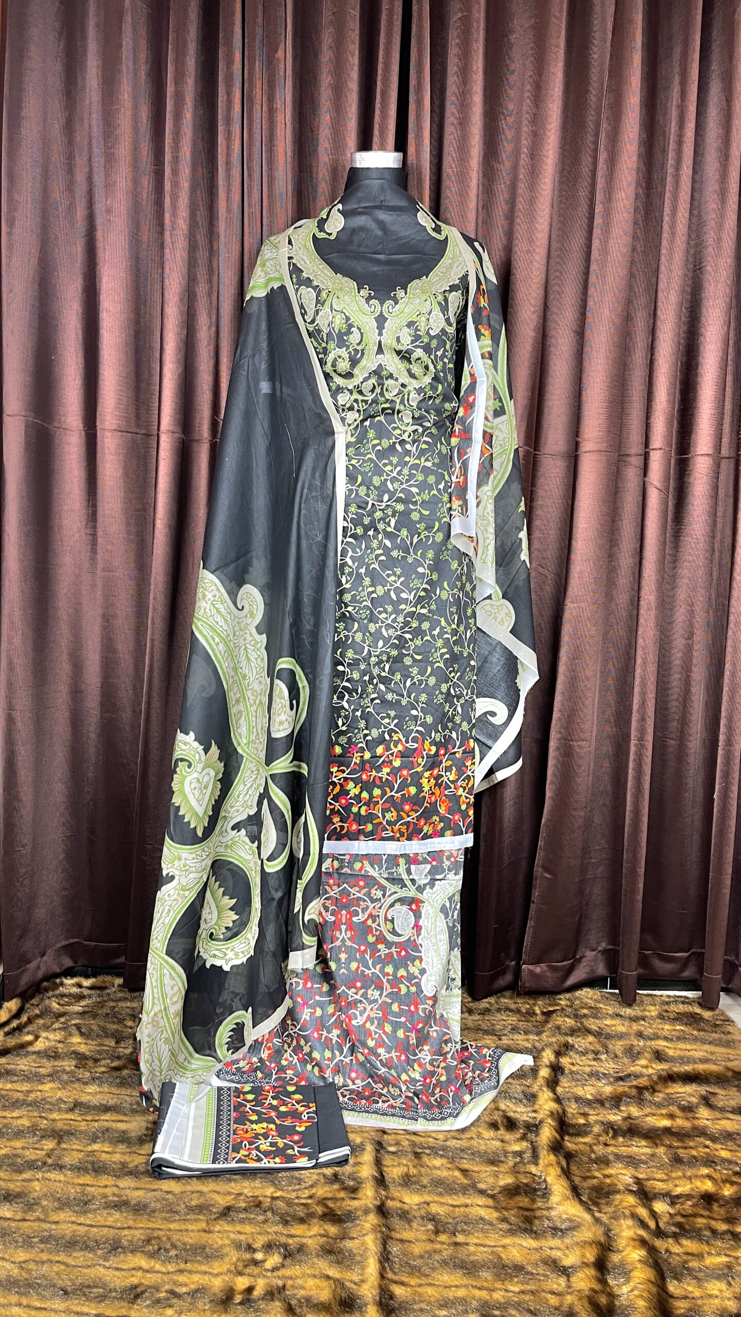 প্রিমিয়াম এমব্রয়ডারেড কটন আনস্টিচড ড্রেস, সাথে এমব্রয়ডারি কটন দুপাট্টা — এলিগেন্ট, স্টাইলিশ ও উৎসব বা বিশেষ দিনের জন্য পারফেক্ট।